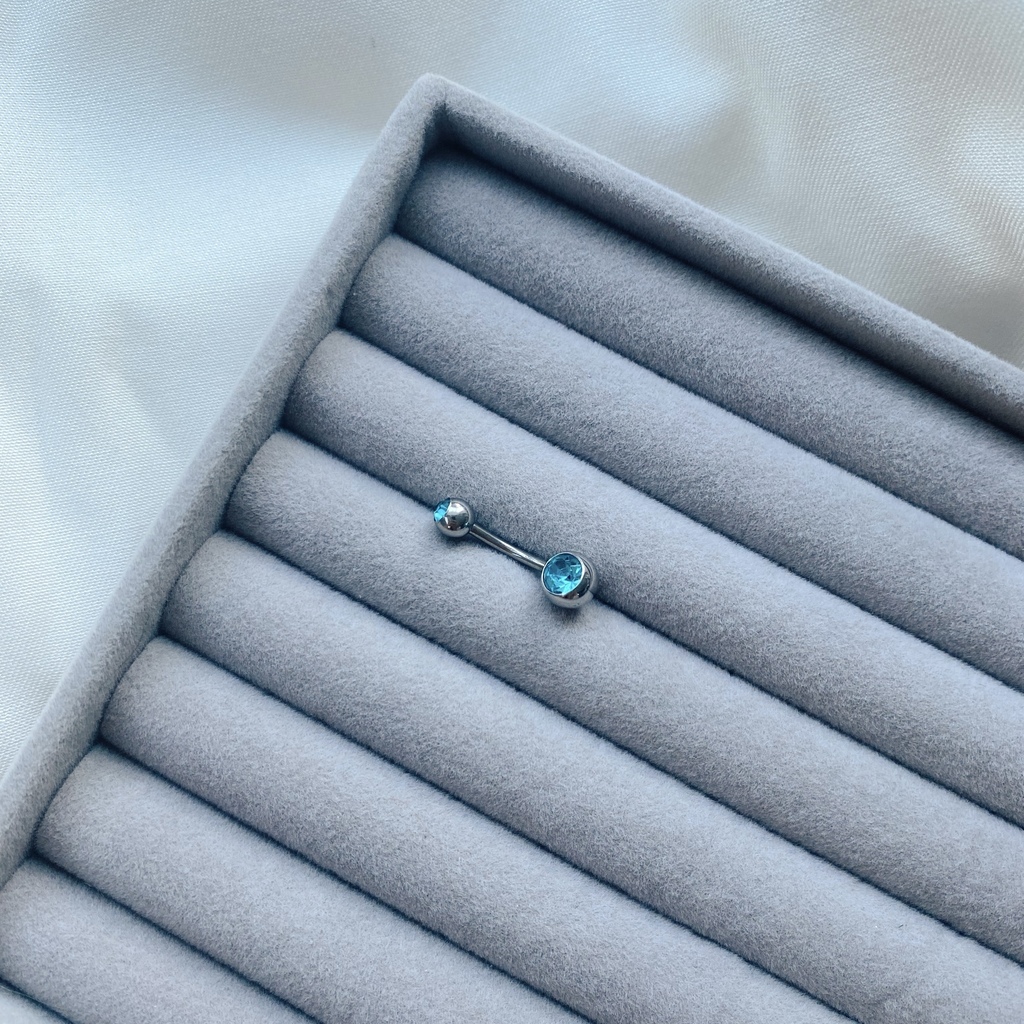 Uma joia delicada que vai valorizar ainda mais a sua perfuração! O piercing de umbigo com pedra azul turquesa é banhado a rhódio e possui haste de 11 mm, discreto na medida certa. Ainda conta com tratamento antialérgico e níquel free. Com fecho de bolinha para rosquear, tem fácil encaixe e não permite que se solte.